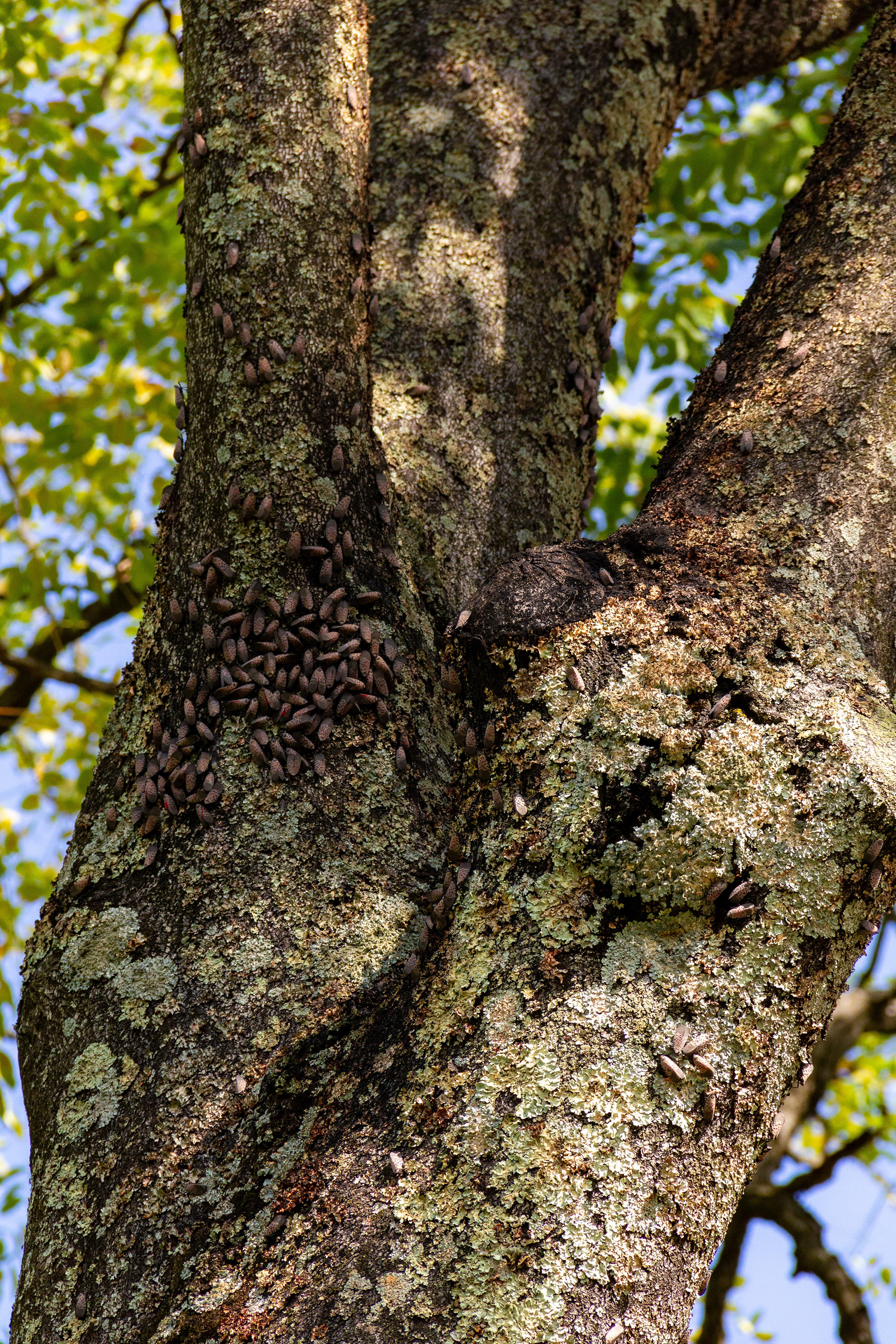 The Meyerhoff Arts Center's nearby tree-of-heaven is thoroughly infested with spotted lanternflies.